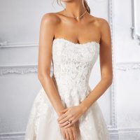 The Caridad design from Vera Wang is dubbed a “high-fashion” look – and we agree.