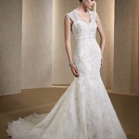 The Caridad design from Vera Wang is dubbed a “high-fashion” look – and we agree.