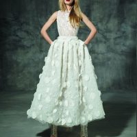 A quintessential princess bridal gown, the Effie design from the Hayley Paige name is a stunner. It’s an ivory, tulle ball gown filled with poise and youthfulness.