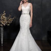 This particular gown really accentuates the body well and offers a lot of complimentary details. For example, the sheer bodice is sexy, the neckline is classic and looks great on everyone, and there’s a stunning scoopback that you’ll want to check out as well.