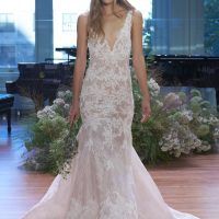 Trumpet or fit-and-flare wedding gowns are very popular because they’re flattering on most body types. The fit-and-flare silhouette is often a perfect medium between an A-line dress and a mermaid gown.