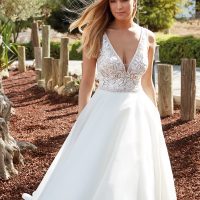 A sophisticated and elegant yet simple wedding gown, wearing Holloway, you will feel comfortable and confident on your wedding day. It is a high fashion wedding dress all the way and only $775.