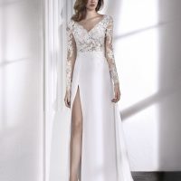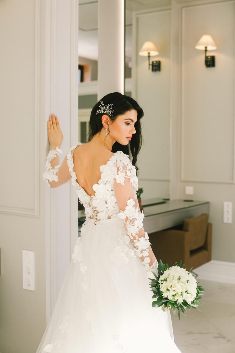 Add to that the beautiful long sleeves and A-line skirt, and you have pure perfection. Pair with a long veil and you have the most breathtaking bridal ensemble – one of dreams!