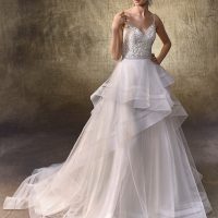 Nix traditional in the gown department. Go with silk, chiffons, or other fabrics that have a less-fuss nature. Tulle or ball gowns won’t give you that sleek finish, instead go with contemporary designs that will stay true to the day’s theme.