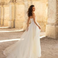 Nix traditional in the gown department. Go with silk, chiffons, or other fabrics that have a less-fuss nature. Tulle or ball gowns won’t give you that sleek finish, instead go with contemporary designs that will stay true to the day’s theme.