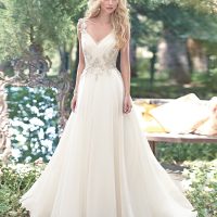 Another bridal favorite is to go floral! This allows you to choose multiple colors (maybe even match your wedding colors) and is a super-feminine choice. We can totally picture this floral gown surrounded by lush greenery for an outdoor garden wedding.