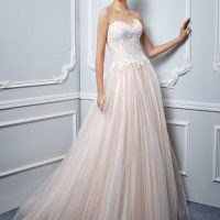 For extra chicness, choose a sophisticated silhouette like sheath or mermaid. A lot of brides go for a ribbed corset top that has sheer patches in between the boning. Finish the look with shiny accessories like sparkly high heels or a glittery headpiece.
