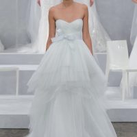 Blanch features a gorgeous and textured jacquard fabric, a bow-inspired bodice with pointed peaks, and it comes in a neutral, candlelight shade.