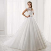 For extra chicness, choose a sophisticated silhouette like sheath or mermaid. A lot of brides go for a ribbed corset top that has sheer patches in between the boning. Finish the look with shiny accessories like sparkly high heels or a glittery headpiece.