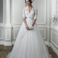 A contemporary style with a plunging back, over-50 brides can definitely slip this on to say those I do’s. It’s simple, it hugs a woman’s body in all the right ways but is still appropriate for a woman with a bit more sophistication to wear as well. The pretty embroidered lace gives it an even more bridal flair.