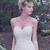It’s hard not to fall hard for a Hayley Paige masterpiece. Fawn is seen with a beautiful, light A-line silhouette, showing off a woman’s curves in all the right places. But it still has the coverage and texture that an older bride would feel comfortable with – while mixing crepe and laces seamlessly.