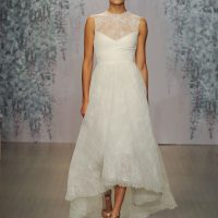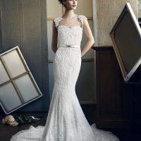 A contemporary style with a plunging back, over-50 brides can definitely slip this on to say those I do’s. It’s simple, it hugs a woman’s body in all the right ways but is still appropriate for a woman with a bit more sophistication to wear as well. The pretty embroidered lace gives it an even more bridal flair.