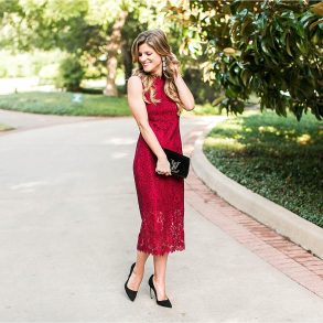 A simple yet feminine touch is the beaded belt at the waist. The full, pleated skirt is totally twirl-worthy and ready for hours of dancing. For a modern note, pockets! It’s a beautiful gown all around.