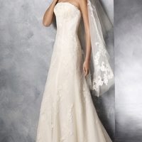This fun and flirty Casablanca gown has a dropped waist, but with the added benefit of crystal embellishments at the natural waist to really accentuate your figure.