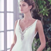 Designer Jenny tells us, “Wedding trends continue to evolve every year and with each year I try to create a collection that is on-trend and modern yet still maintains classic and timeless elements. This year’s collection was inspired by multi-colored florals, varied textures, patterns and colors that would allow brides to easily mix and match within the bridal party. For bridal, I am so excited to introduce a new line “Jenny by Jenny Yoo.” This collection is youthful, effortless, fresh with whimsical details. My personal favorite is the Isla gown which features a beaded/sequinned embroidered lace over sheer illusion tulle bodice and frothy layers of tulle over a slim sequinned skirt creating a gown rich with texture and sparkle.”