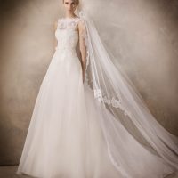 Jim Hjelm wedding gowns are infused with romance. The combination of textures and the use of lace are soft, feminine and oh so graceful. How could a bride not feel beautiful in these dresses?