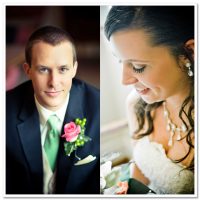 “My husband and I are avid outdoors people. Many of our first road trips together were to national parks, on hiking and camping adventures. For our wedding, we chose to anchor the color scheme around a dark green, specifically utilizing the ample ivy and greenery that was already part of our venue. To complement the green, I chose light pastel shades of blue-grey, light pink florals, and pops of gold to create an overall summer earthy color palette.