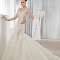 Talk about a show-stopper! Monique Lhuillier Sunday Rose is a dramatic and romantic wedding dress. Created in silk satin organza the dress features intricate (and stunning!) roses throughout the A-Line skirt.
