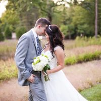 From the moment that Andrew and I were engaged, we knew that we wanted to have our reception at Andrew’s parents’ home. Andrew’s father and family had built a barn on the property six years prior and it seemed like the perfect venue for our vintage inspired wedding. Once the venue had been decided everything seemed to flow into place. The ceremony was held at my family church. It was important to us that the natural beauty and, what the location represented in our faith, shine through in our ceremony. And it did just that. Even with the sweltering heat that was brought on with the day, our full Catholic Mass ceremony was a beautiful celebration of the sacramental vow that Andrew and I took. Since Andrew and I both have very large families, the idea of having a small wedding was out of the question. With a guest list that rounded out at over 600 people, turning our barn into a wedding venue was not an easy task. We made this happen by focusing on details that would create the country vintage feel we were seeking. From centerpieces created from repurposed barn siding, to burlap signs and table runners, a great deal of the day’s elements were made by Andrew and I, with the help of supportive friends and family. Old whiskey barrels, vintage blue mason jars, antique chandeliers, and hand painted wooden signs all came together to create the country vintage atmosphere we dreamed of. Possibly the most unique detail of our day was the 1923 Buick pick-up truck that served as a focal point of the outdoor space. Covered with vintage frames filled with wedding photos of our parents and grandparents, the truck served as a reminder and symbol of the love that continues to grow in our family. Our big day was completed with guests sending off floating Chinese lanterns into the night sky. Sharing our personal love and interest for the lanterns with our guests was an incredible feeling. Getting to see the joy that they brought is something Andrew and I will surely never forget. – Lynsey