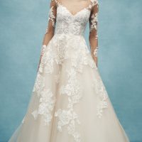 A deep-V neckline, a high slit and beautiful beading, it’s the ultimate design that features both couture qualities and bridal details.
