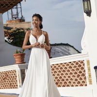 Is minimalism your thing? The Arly gown from Allure Bridals is a great combination of subtle sensuality and simplicity. The silky cowl neck paired with a hint of the lacy sweetheart neckline is just enough of a tease without being over the top. Plus, it’s a timeless design you won’t regret looking back on.