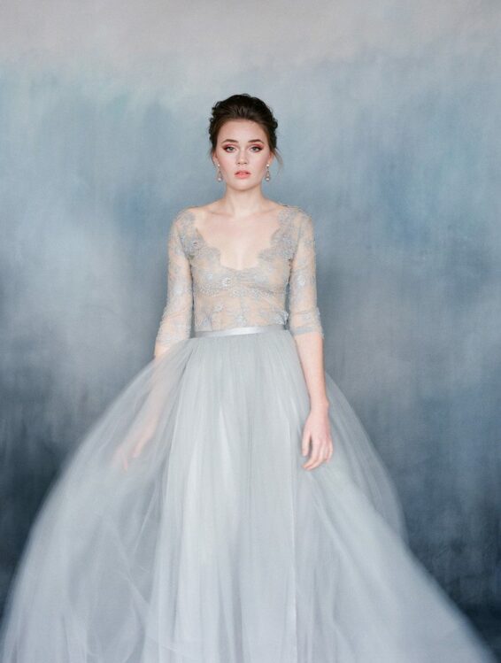 This nightingale gown is full of romance and whimsy, and this gray-blue tone is so versatile and gorgeous on so many skin tones!