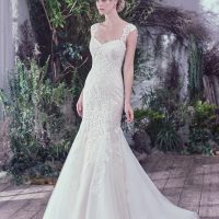 The Milano gown is covered with ivory floral embroidery and soft lace but the back adds a hint of sexy.