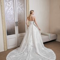 If you want a dramatic, ultra-regal, and traditional bridal look when you walk down the aisle get a cathedral length veil. These cathedral veils are the most glamorous as they are 108” – 120” long. They are designed to extend past the length of your train. Most experts say that a cathedral veil should extend at least an additional 5” past your train, not just match the length of it. This creates an ultra-glamorous and dramatic effect.