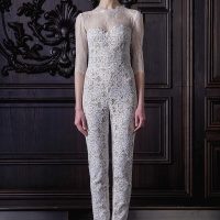 A dramatic, deep plunge neckline is accented perfectly with a unique floral lace pattern that is romantic and boho-chic. Fitted through the hip showing the curves of your body, while the embroidered gypsy silk skirt (with hidden high slit) flairs out creating movement and whimsy while you graze the aisle and dancefloor.